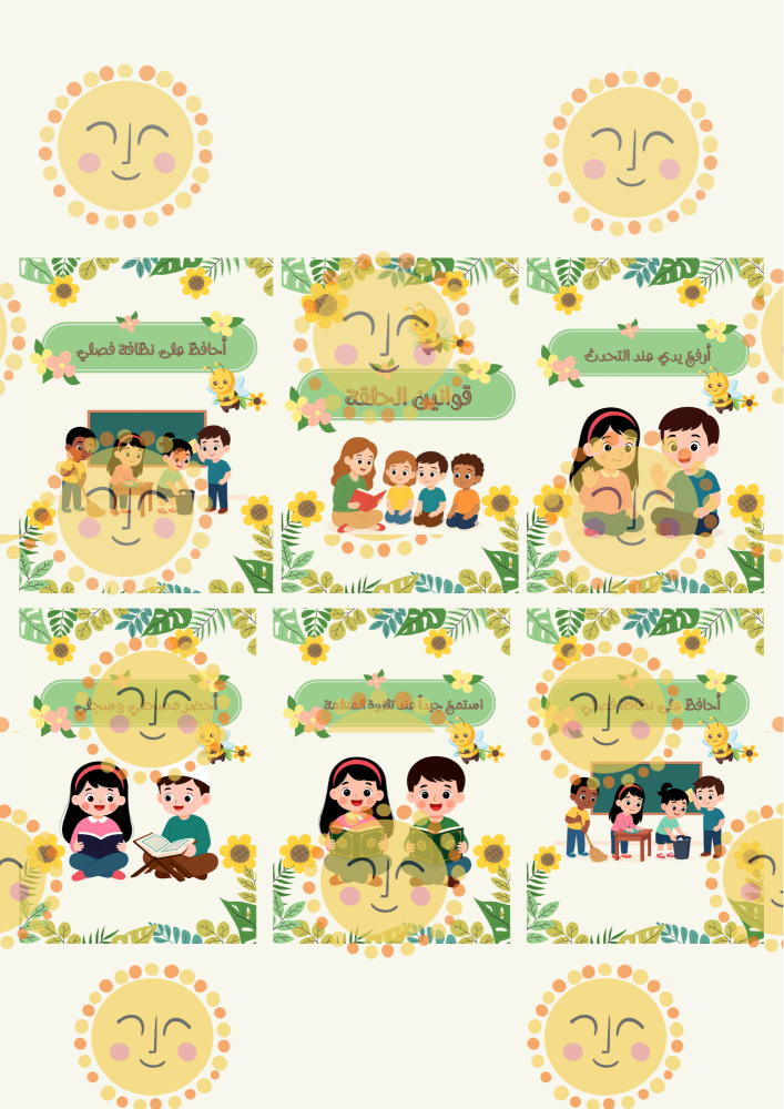 مجموعة من التعليمات البسيطة والودية التي تساعد الأطفال على الاستمتاع بوقت الحلقة في الصف بروح من النظام، الاحترام، والتعاون.