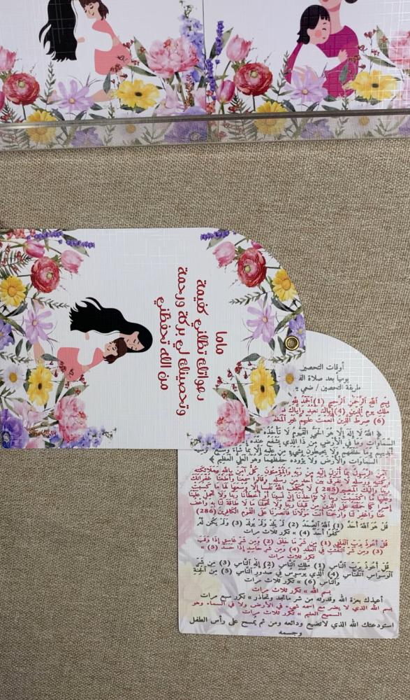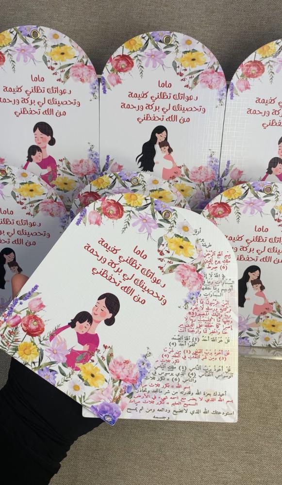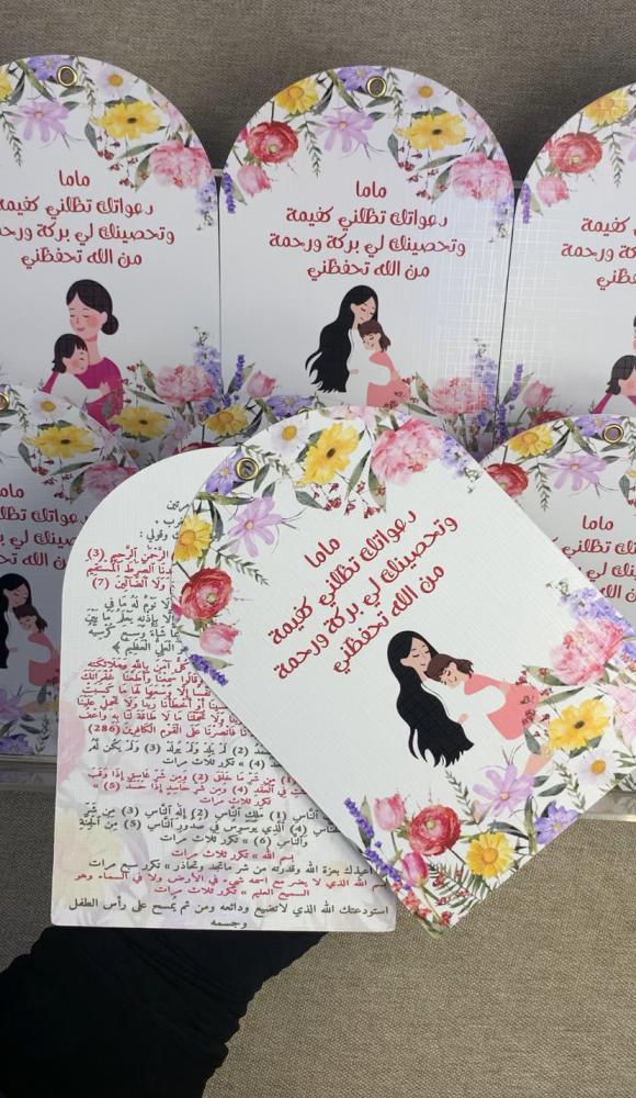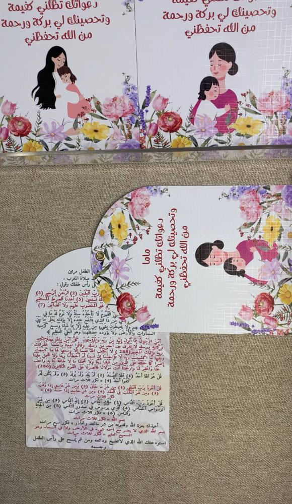 كرتين بحلقة معدنية تحتوي على طريقة وآيات تحصين الطفل💕