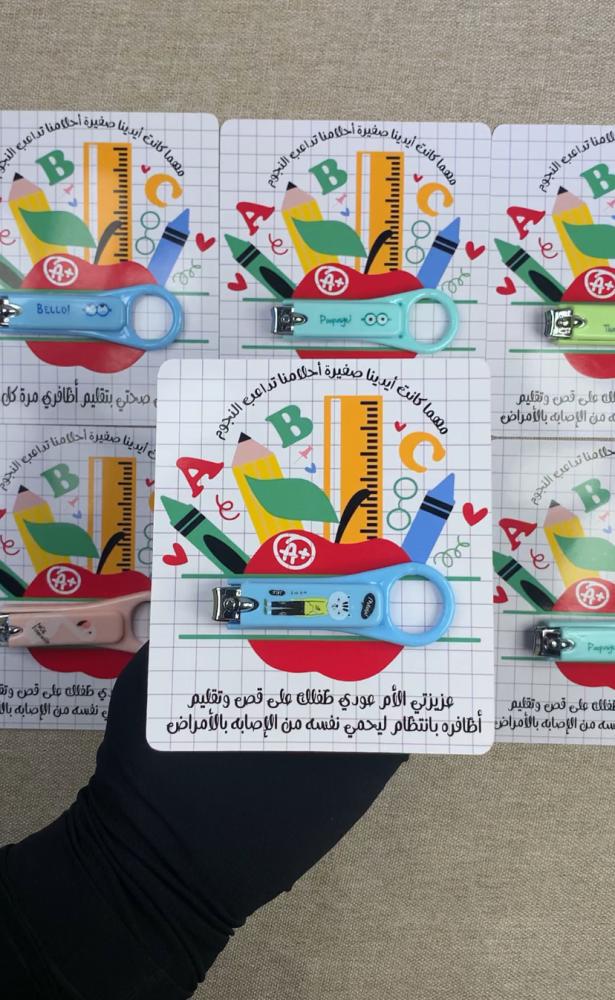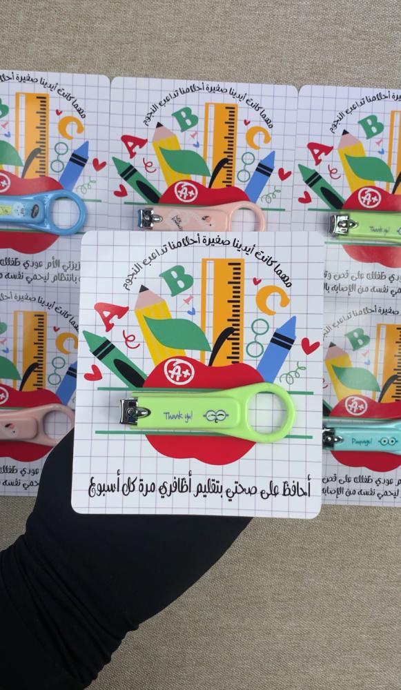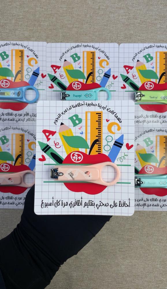 كروت لطيفة بثيم مدرسي تحتوي على مقص أظافر مناسبة للأطفال ولمجلس الأمهات للتوعية بأهمية قص الأظافر✨