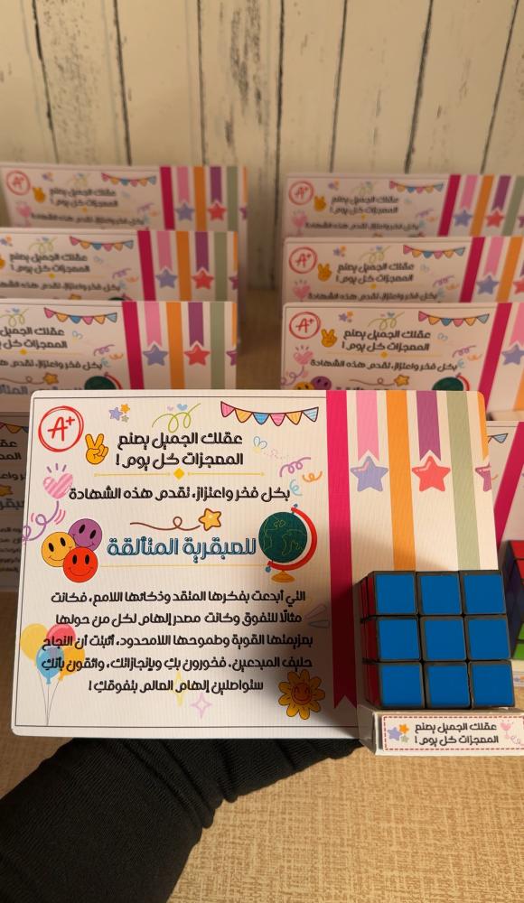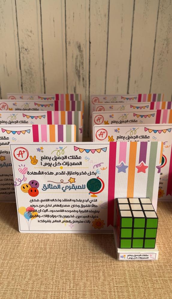 شهادة تقدير تحتوي على مكعب ذكاء🌟